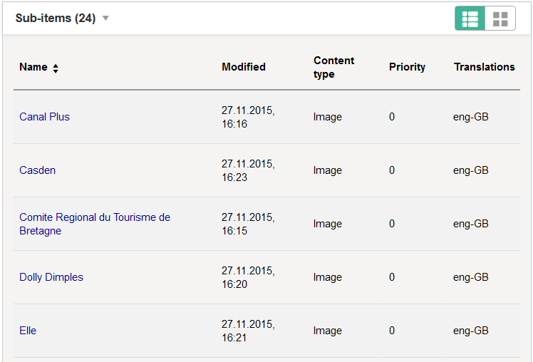- Improvements to the Sub-Items view of a content item: You can now sort content items by clicking column headings